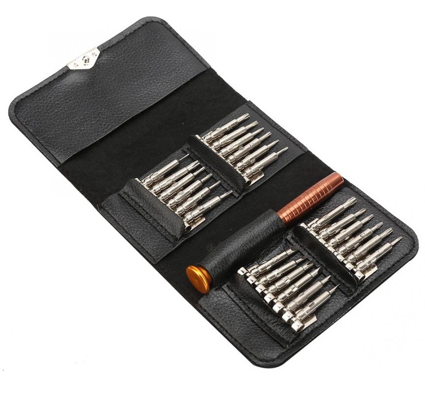 Za popravku lap topova, mobilnih telefona, foto aparata, kompjutera, naocara… 25 in1 screwdriver set, including: Hex Screwdriver (10 Pcs): T2 T3 T4 T5 T6 T7 T8 T9 T10 T15 Phillips Screwdriver (6 Pcs): PH0000, PH000, PH00, PH0, PH1 (2 Pcs) Straight Screwdriver (4 Pcs): 1.0, 1.5, 2.0, 3.0, Pentagram Screwdriver (2 Pcs