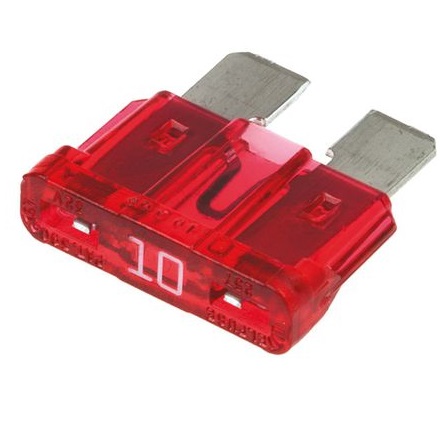Blade fuse, Osigurac Blade, Standardni FLA osigurac, Ubodni ATO osigurac, Napravljen od legure cinka, Niska tacka topljenja sprecava preopterecenje, Tip FLA, Napon 32 V, Struja 10 A, Dimenzije 19x20x5.5 mm