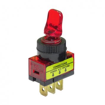 SCI Type of switch toggle Number of all positions 2 Stable positions number 2-position Contacts configuration SPST Switching method OFF-ON DC contacts rating 20A / 12VDC Leads 6,3×0,8mm connectors Kind of toggle flat Mounting hole diameter 12.2mm Knob height 17mm Max. contact resistance: 50mR Bod